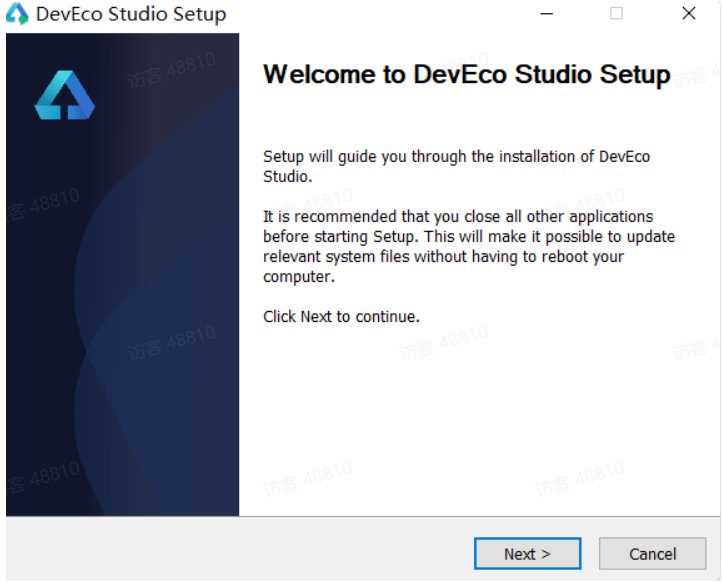 • 确认设置项的信息,点击Next开始安装,等待Node.js、ohpm和SDK下载完成后,单击Finish,界面会进入到DevEco Studio欢迎页。